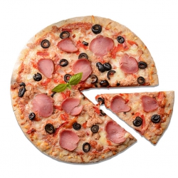 Tomatensaus, kaas, champignons, ham, paprika, ui, gekr. gehakt en olijven